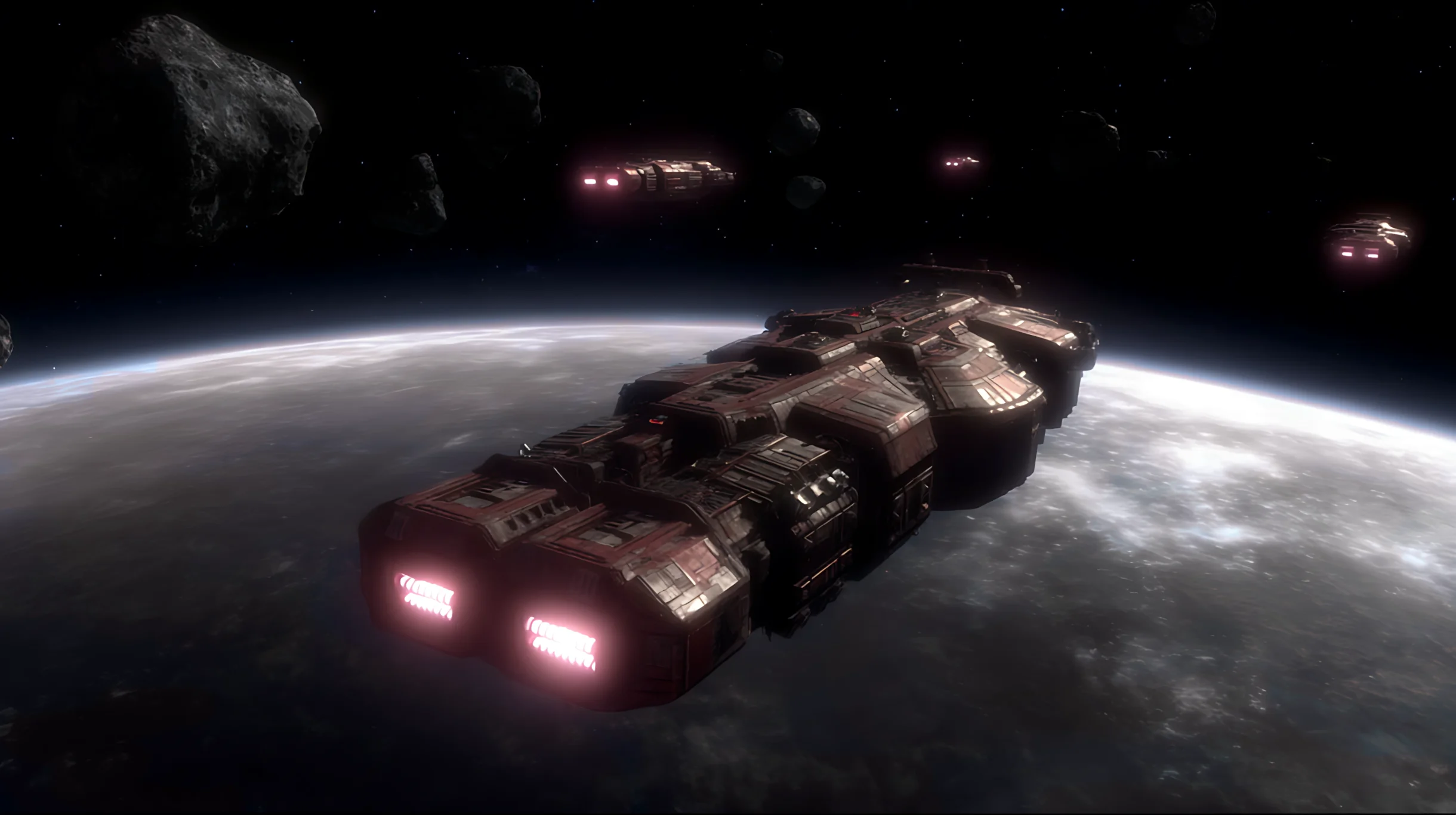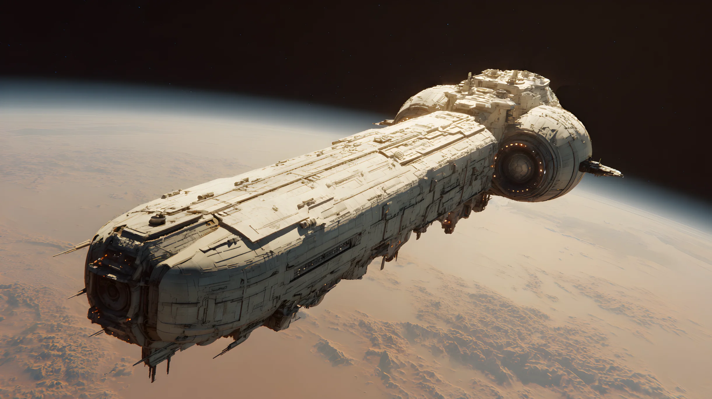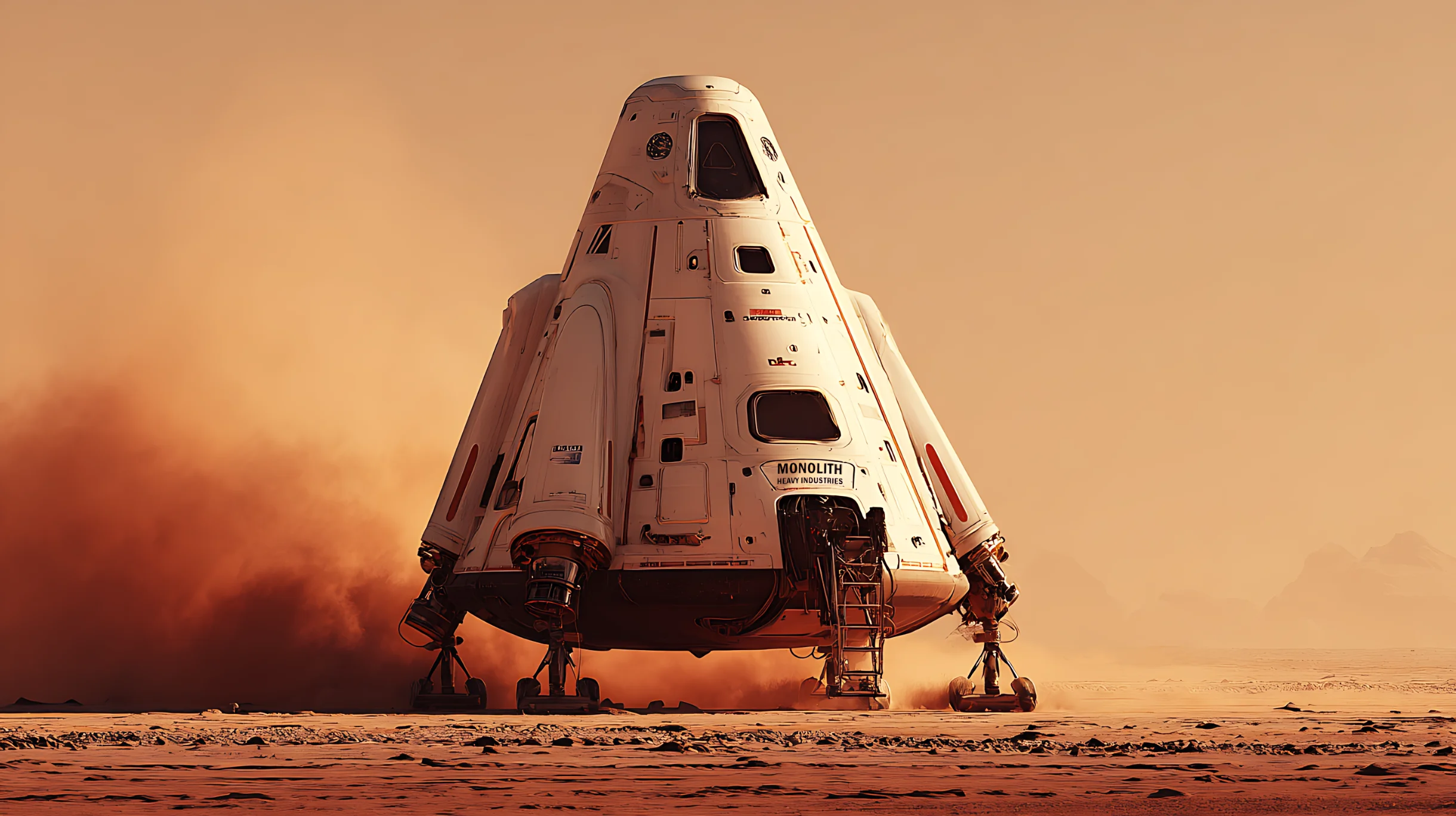 Monolith launches the first successful expedition to Mars. Thanks to the lunar base, they are able to build the spacecraft in orbit around Earth.