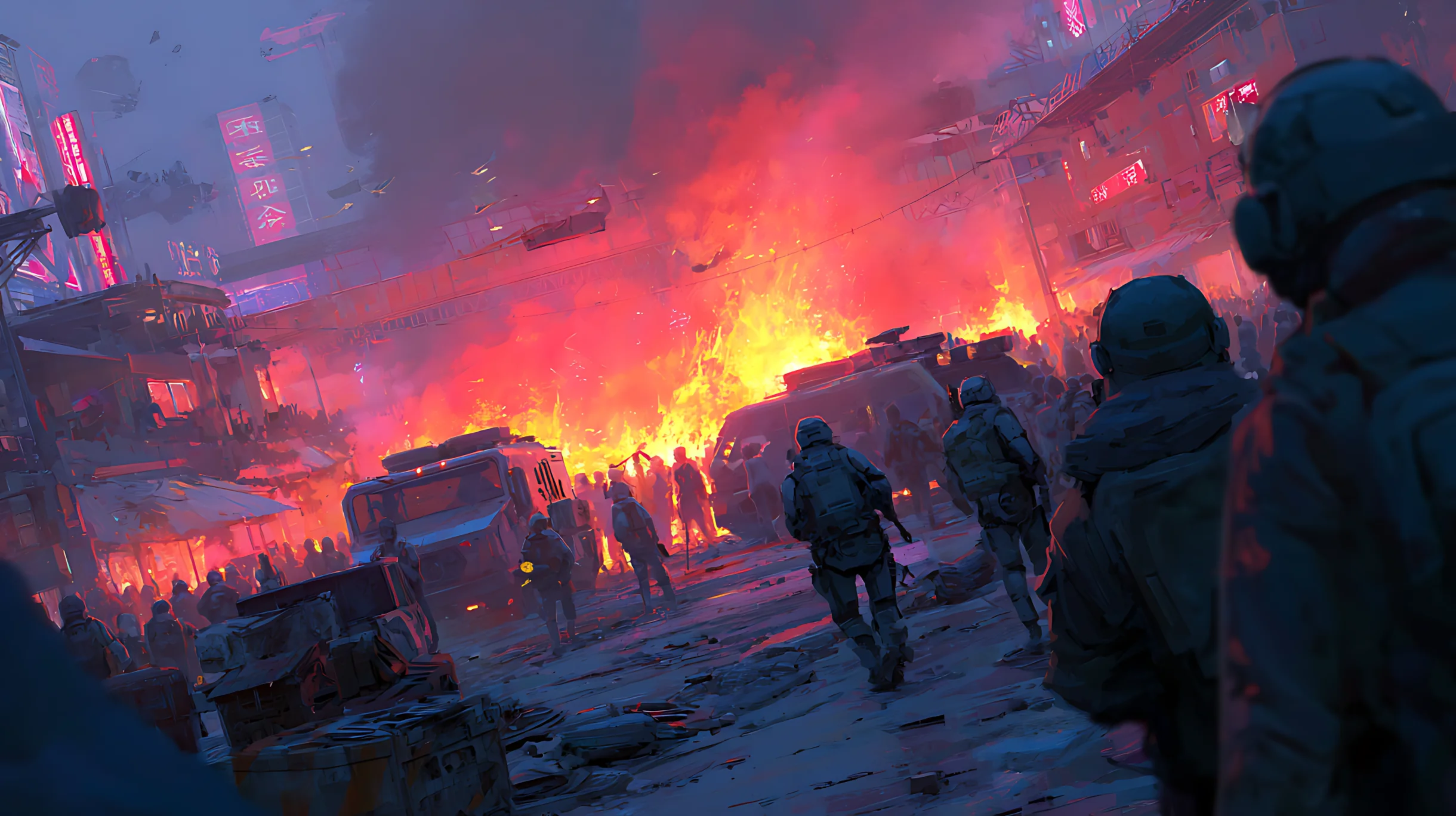 To suppress food riots in the mega-cities, police forces deploy the first combat-grade cybernetics. These clumsy, hydraulic limbs are manufactured by a defense contractor called KreuzTech.
